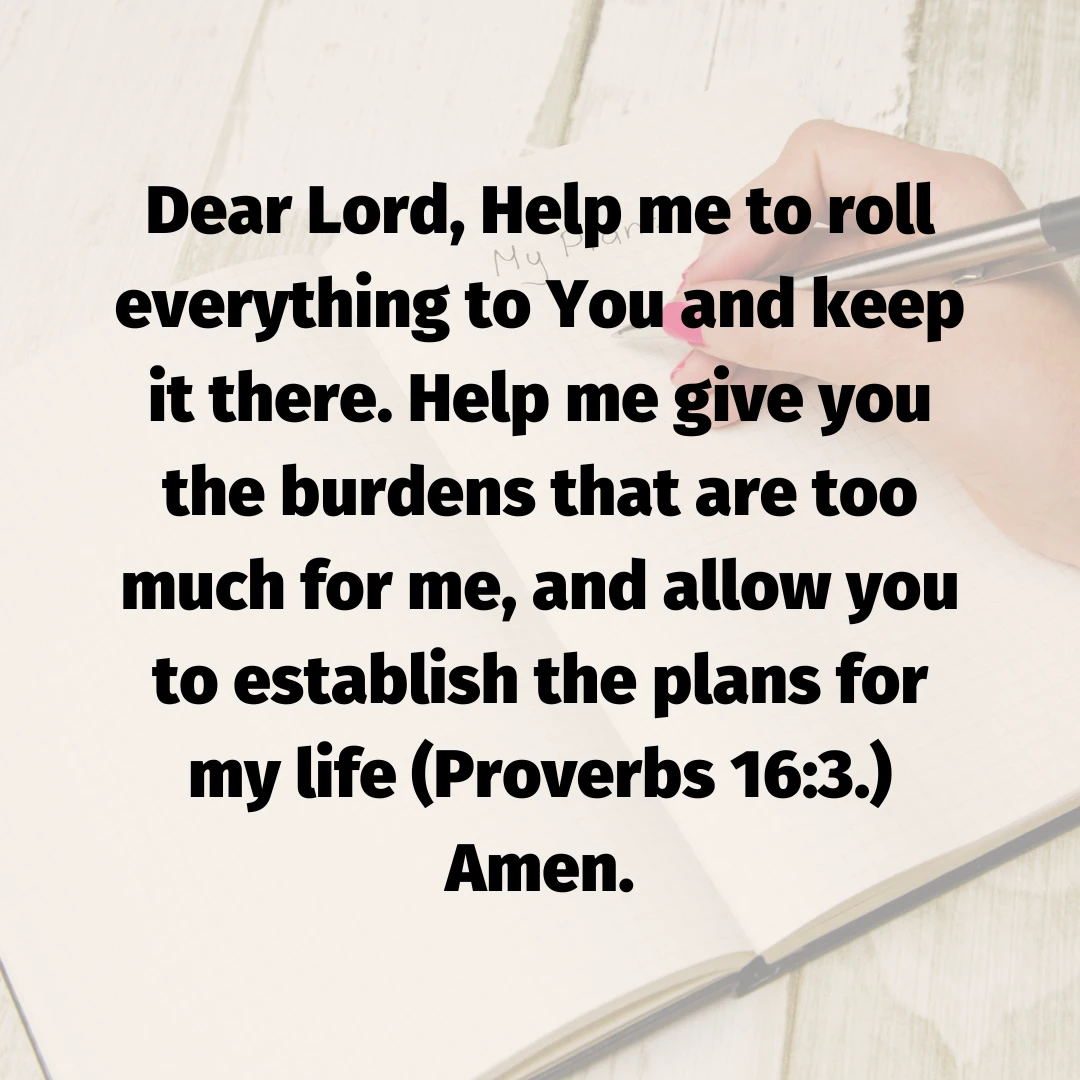 Dear Lord, Help me to roll everything to You and keep it there. Help me give you the burdens that are too much for me, and allow you to establish the plans for my life. Amen.